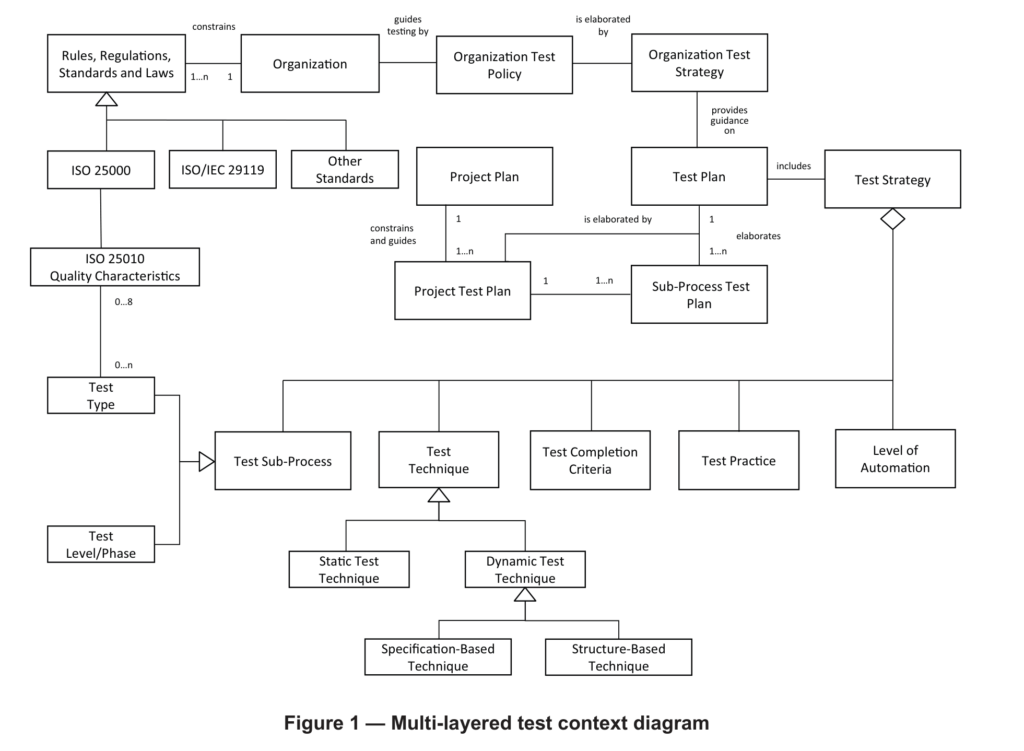 In order to see where harmonization gives the biggest bang for the buck, first we need to understand how modern testing is actually cut into pieces. I did some research and was pretty surprised that there isn’t any good model or taxonomy of testing yet described. Probably I just couldn’t find it. What one can find many times are categorizations of test types, like found here. The ISO/IEC/IEEE 29119-1 software testing standards also doesn’t really provide such a model. There is a „multi-layered test context diagram“, but it falls short in the areas where I think alignment can happen the best.