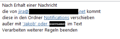 So, the first rather obvious step was to add a filter/rule, which moves all mail coming from automailers like jira-no-reply@foo.bar.com to a Notifications folder: